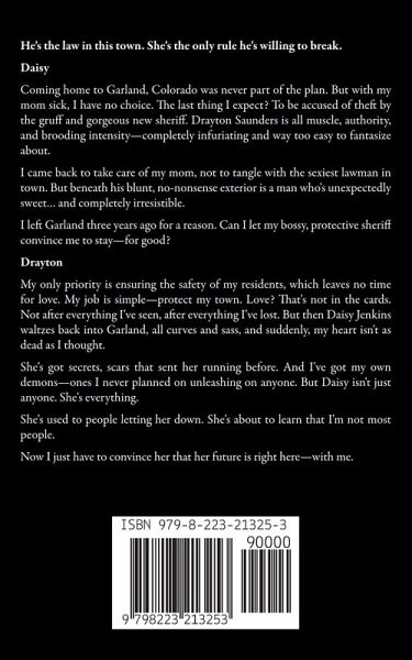 Daisy The last thing I expect when I return to my hometown in Colorado is to be accused of stealing by the new sheriff. Drayton Saunders is big, blunt - and totally beddable! But I'm back to take care of my sick mom, not get all hot and bothered over the local sheriff, no matter how unexpectedly sweet and sexy he turns out to be. There's a reason I left Garland three years ago, vowing never to return - but can the love of my sexy sheriff convince me to stay - for good? Drayton My only priority is ensuring the safety of my residents, which leaves no time for love. Besides, an horrific tour in Yemen has left me with too much baggage and too many scars for most women. My heart has been flatlining for years - until five-and-a-half feet of curvy perfection by the name of Daisy Jenkins walks into my dad's bar and breathes new life into the dormant muscle in my chest. But Daisy has scars of her own - scars that sent her running from Garland three years ago. She's used to being let down by most people in her life - but she's about to discover that I'm not most people. I just hope my love will be enough to persuade her to stay and build a new life here - with me.