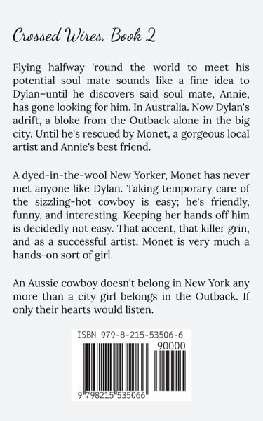 Flying halfway 'round the world to meet his potential soul mate sounds like a fine idea to Dylan–until he discovers said soul mate, Annie, has gone looking for him. In Australia. Now Dylan's adrift, a bloke from the Outback alone in the big city. Until he's rescued by Monet, a gorgeous local artist and Annie's best friend. A dyed-in-the-wool New Yorker, Monet has never met anyone like Dylan. Taking temporary care of the sizzling-hot cowboy is easy; he's friendly, funny, and interesting. Keeping her hands off him is decidedly not easy. That accent, that killer grin, and as a successful artist, Monet is very much a hands-on sort of girl. An Aussie cowboy doesn't belong in New York any more than a city girl belongs in the Outback. If only their hearts would listen.