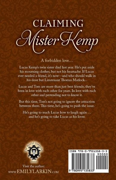 A forbidden love... Lucas Kemp's twin sister died last year. He's put aside his mourning clothes, but not his heartache. If Lucas ever needed a friend, it's now-and who should walk in his door but Lieutenant Thomas Matlock... Lucas and Tom are more than just best friends; they've been in love with each other for years. In love with each other and pretending not to know it. But this time, Tom's not going to ignore the attraction between them. This time, he's going to push the issue. He's going to teach Lucas how to laugh again ... and he's going to take Lucas as his lover. Length: A short novel of 48,000 words Sensuality level: A hot Regency male-male romance with sensual love scenes The fourth book in the acclaimed Baleful Godmother series by multi award-winning author Emily Larkin. If you love heartfelt and intensely emotional male-male romances that will keep you reading all night long, then this novel is for you. Be swept into a Regency England brimming with passion, repressed desires, and love. Start this addictive series today!