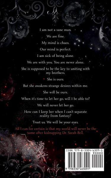 I am not a sane man.We are fine. My mind is chaos.Our mind is perfect. I am sick of being alone.We are with you. You are never alone. She is supposed to be the key to uniting with my brothers.She is ours. But she awakens strange desires within me.She will be ours. When it's time to let her go, will I be able to?We will never let her go. How can I keep her when I can't separate reality from fantasy?Trust us. We will be your eyes. All I know for certain is that my world will never be the same after kidnapping Dr. Sarah Bell.