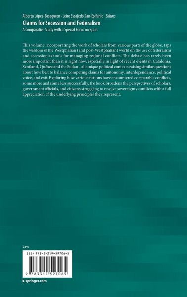 Part I Claims for Secession in Western Democracies. A Comparative Overview.-Secession and Federalism in the United States: Tools for Managing Regional Conflict in a Pluralist Society.-Legality, Legitimacy, Decisionism and Federalism: An Analysis of the Supreme Court of Canada's Reasoning in Reference re Secession of Quebec,1998.-Competing Claims for Federalism in Complex Political Settings. A Canadian Exploration.- Is the Québec Secession Movement Dead? Perspectives After Canada's 2015 Federal Election.- Provincial Integration Through the Senate: Trudeau's (Not Quite) New Era.- 'Scotland in the United Kingdom: An Enduring Settlement'?.- The Future of the United Kingdom's Territorial Constitution: Can the Union Survive?.- Fiscal Federalism and Fiscal Responsibility: The Case of Scotland.- The Scottish Independence Referendum: Lessons Learned for the Future.- The End of Belgium As We Know It: From Consociational Democracy to Partitocratic Deadlock?.- Secessionist Claims in a Federal System: The Belgian Case.- The Relations Between Denmark, Greenland and the Faroe Islands. A Model with Future to Challenge Secessionism?.- The Italian Regional State: A Counter-Reformation After the Failure of the 2001 Constitutional Reform?.- Part II Referendums and Constitutional Clauses on Secession.-Constitutionalizing Secession in Order to Harmonize Constitutionality and Democracy in Territorial Decentralized States Like Spain.- Territorial Referendums from a Constitutionalist Perspective:Functions, Justifications and Legal Design.-The Sovereign State and the Right to Secede. Historical Examples and Theoretical Reasons Concerning the Benefits of Political Regulation.-Federative Tools: A New Perspective for Secession.-Reasons for and Limits of the Referendum as a Mechanism to Declare the Secession of Part of a State.- The Myth of Ontological Foundations and the Secession Clause as Federal Answers to National Claims of External Self-Determination.- Part III Claims for Secession and Federalism in Spain.-Claims for Secession in Catalonia. Rule of Law, Democratic Principle and Federal Alternative.-Secession and Federalism. The Spanish Case.-Constitution and Referendum on Secession in Catalonia.-Federalism and Democratic Quality: The Contribution of Territorial Pluralism to Constitutional Democracy.-Political Pluralism and Independence in Catalonia: Lessons Learned from Federalism.-Federal Reform of Spain vs Secession in Catalonia. Could Constitutional Reform Provide a Response to the Demands Upon Which the Justification for Secession Are Based?.-Which Federalism for Spain?.-Constitutional Reform Within the Context of the Debate on the Independence of Catalonia.-The Constitutional Answer to the Crisis of the Model of Territorial Organization.-Constitutional Reform and Federalism in Spain. A Modest Proposal.-Constitutional Reform andGlobal Market Federalism.-Territorial Secession and Federal Loyalty in the 1978 Spanish Constitution.-State Integration and Disintegration Within the European Union. Regarding the Purported Secession of Catalonia and Its Hypothetical Membership of the EU.-The Catalan Independence Movement in the Political and Constitutional Debate in the European Union.