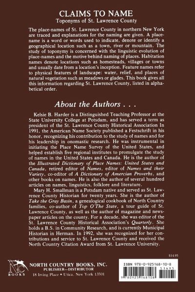 The place-names of St. Lawrence County in northern New York are traced and explanations for the naming are given. Toponomy is concerned with the linguistic evolution of place-names and the motive behind naming of places. This book provides all such information regarding St. Lawrence County, listed in alphabetical order.