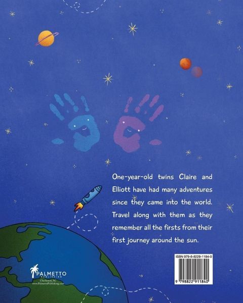 One-year-old twins Claire and Elliott have had many adventures since they came into the world. Travel along with them as they remember all the firsts from their first journey around the sun. On February 11, 2022 in San Diego, California, Claire and Elliott entered the world. Their mom and dad, Lauren and Jake, were so happy to finally welcome them home! Throughout the twins' first year, they got to experience all sorts of wonderful things, including: ¿ Learning to eat solid food. ¿ Developing their unique personalities. ¿ Going on trips to snuggle and meet family members. ¿ Welcoming the new year together. ¿ Camping with mom and dad. ¿ Flying over the Atlantic Ocean. ¿ Celebrating their first birthday. Claire and Elliott's first year of life was exciting, and foreshadows just how fun and adventurous the rest of their lives will be! Aunt Jilli, the title characters' aunt, created this book as a keepsake-and to share her love of books with the two little humans she loves the most. Written for the author's niece and nephew, Claire and Elliott's First Journey Around The Sun is a personal and relatable book for parents and children. Many of the firsts Claire and Elliott experience in their book also occur in other children's lives too!