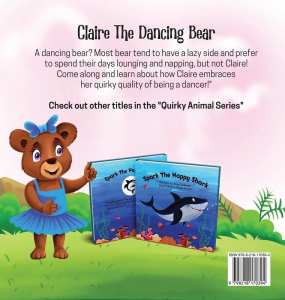 Have you ever met a dancing bear? Most bears tend to nap, relax, and enjoy their days laying out and sleeping in the sun...but not our friend Claire! While the others bears are hiding up in a tree, Claire is spinning, tapping and dancing her way through the forest and enjoying everything about who she is! Who wants to hide all day when you can dance in the sun with your forest friends? Claire the Dancing Bear is a great read to teach kids about the importance of being themselves and truly embracing everything that is unique about them! With a story based in the forest with forest animal friends, rhyming, and engaging illustrations, this is a great read for children and parents alike! Snuggle up and enjoy the second book in the Quirky Animal series!
