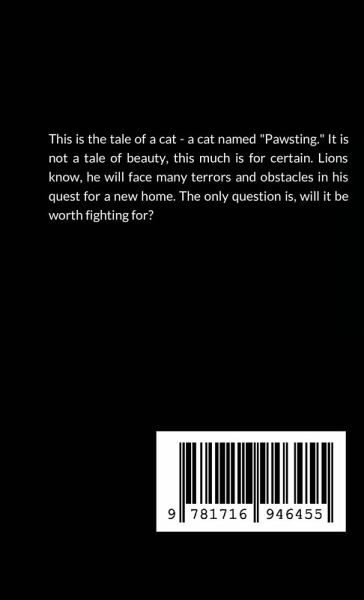 This is the tale of a cat - a cat named "Pawsting." It is not a tale of beauty, this much is for certain. Lions know, he will face many terrors and obstacles in his quest for a new home. The only question is, will it be worth fighting for?