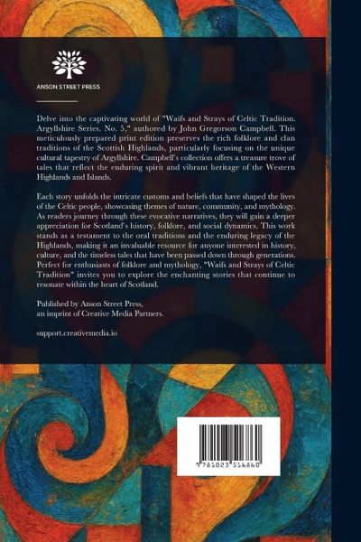 Delve into the captivating world of "Waifs and Strays of Celtic Tradition. Argyllshire Series. No. 5," authored by John Gregorson Campbell. This meticulously prepared print edition preserves the rich folklore and clan traditions of the Scottish Highlands, particularly focusing on the unique cultural tapestry of Argyllshire. Campbell's collection offers a treasure trove of tales that reflect the enduring spirit and vibrant heritage of the Western Highlands and Islands. Each story unfolds the intricate customs and beliefs that have shaped the lives of the Celtic people, showcasing themes of nature, community, and mythology. As readers journey through these evocative narratives, they will gain a deeper appreciation for Scotland's history, folklore, and social dynamics. This work stands as a testament to the oral traditions and the enduring legacy of the Highlands, making it an invaluable resource for anyone interested in history, culture, and the timeless tales that have been passed down through generations. Perfect for enthusiasts of folklore and mythology, "Waifs and Strays of Celtic Tradition" invites you to explore the enchanting stories that continue to resonate within the heart of Scotland. This work has been selected by scholars as being culturally important, and is part of the knowledge base of civilization as we know it. This work is in the public domain in the United States of America, and possibly other nations. Within the United States, you may freely copy and distribute this work, as no entity (individual or corporate) has a copyright on the body of the work. Scholars believe, and we concur, that this work is important enough to be preserved, reproduced, and made generally available to the public. We appreciate your support of the preservation process, and thank you for being an important part of keeping this knowledge alive and relevant.