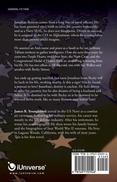 Jonathan Roberts comes from a long line of naval officers. He has been groomed since birth to serve his country honorably, and as a Navy SEAL, he does not disappoint. Driven to succeed, he is assigned to the CIA in Afghanistan, where he accomplishes more than anyone could imagine. He assumes an Arab name and poses as a Saudi so he can infiltrate Taliban territory to gather intelligence. Over the next three years, he earns two Purple Hearts, two Silver Stars, the Navy Cross, and the Congressional Medal of Honor. Even so, something is missing from his life. He has two affairs to fill the void: one with Sue Walker and another with Becky Simon. Sue ends up getting married, but soon Jonathan hears Becky will be back in his life, working nearby. Is this a sign? Has he found a woman to love? Jonathan's destiny is unclear. He feels driven to serve his country, but he also dreams of being a husband and father. Is he destined to be with Becky, or is he destined to be married to his work, like so many Roberts men before him?
