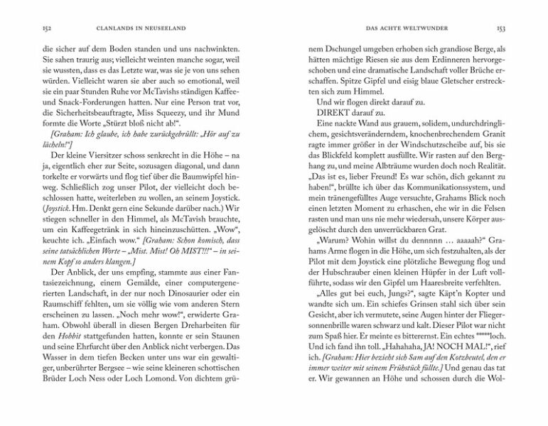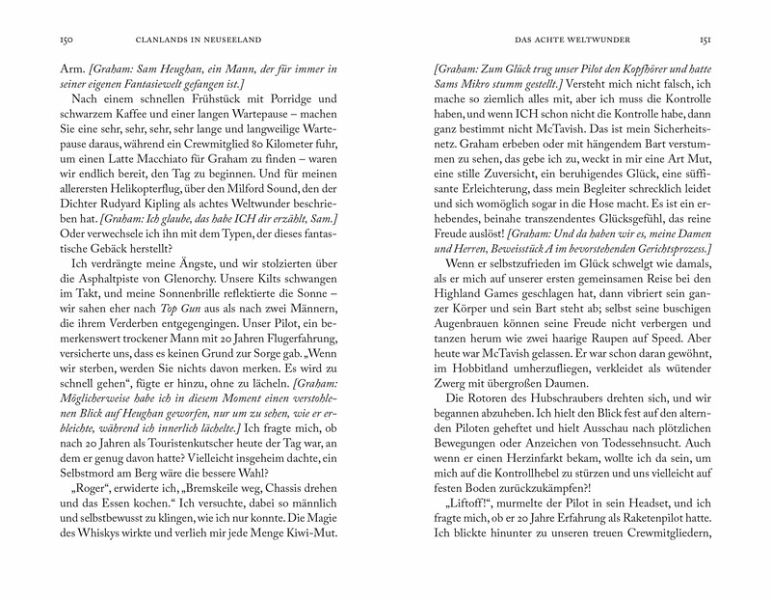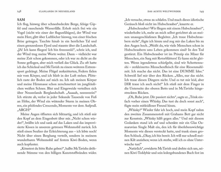 Lustig und aufregend beschreibt das "eigenwillige" Paar den schottischen Einfluss auf Neuseeland, lernt die reiche Kultur kennen, erkundet die wunderschönen Landschaften Mittelerdes und stürzt sich in die wildesten Abenteuer, die es hier zu erleben gibt. All dies wird (natürlich!) von einer gesunden Portion Sam begleitet, der seinen treuen Reisebegleiter Graham quält.