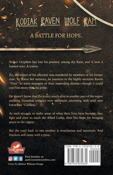 Striker Gryphon has lost his position of honor among the Ram and is now a hunted man, a traitor. Zo, the object of his affection, was murdered by members of his former clan. To honor her memory, he journeys to the highly secretive Raven Nest to warn strangers of their impending demise - even though it could cost him more than just his pride. He doesn't know that Zo is very much alive and in another part of the region assisting Nameless refugees over a mountain swarming with wild men known as Clanless. As each struggle to make sense of what their lives have become, they fight and claw to reach the Allied Camp, their last hope in bringing peace to the region. But the road back to one another is treacherous and uncertain. Freedom will come at a price.