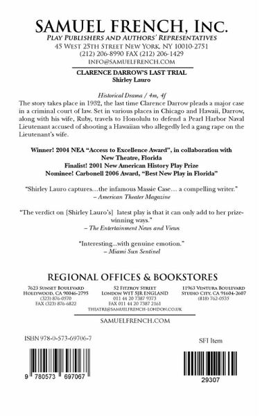Drama / Characters: 5m, 3f Winner! 2004 NEA "Access to Excellence Award," in collaboration with New Theatre, FL, Finalist! 2001 New American History Play Prize The story takes place in 1932, the last time Clarence Darrow pleads in a criminal court of law. Set in various places in Chicago and Hawaii, Darrow with his wife, Ruby, travels to Honolulu to defend a Pearl Harbor Naval Lieutenant accused of shooting a Hawaiian who allegedly led a gang rape on the Lieutenant's wife.