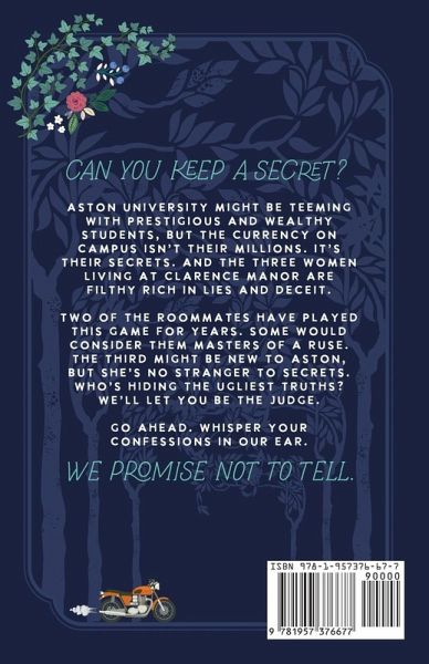 Can you keep a secret? Aston University might be teeming with prestigious and wealthy students, but the currency on campus isn't their millions. It's their secrets. And the three women living at Clarence Manor are filthy rich in lies and deceit. Two of the roommates have played this game for years. Some would consider them masters of a ruse. The third might be new to Aston, but she's no stranger to secrets. Cassia, the outsider. Elora, the ice princess. And Ivy, the puppet master. Who's hiding the ugliest truths? We'll let you be the judge. Go ahead. Whisper your confessions in our ear. We promise not to tell.