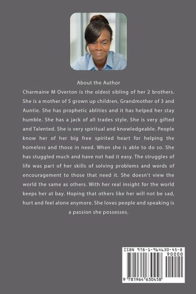 We should never be afraid of our Spiritual or Natural gifts. They were given to you for a reason and please remember that. When you realize a pattern in your life that keeps happening, it's trying to tell you something you need to address. Which I was compelled to write in this book. You were called and now it's time to be heard. As far, talent is important use it wisely and have fun with it. Let's be free and experience this life as we pass through it. Knowing you did your best to make it happen. You kept the faith, Now move in victory.