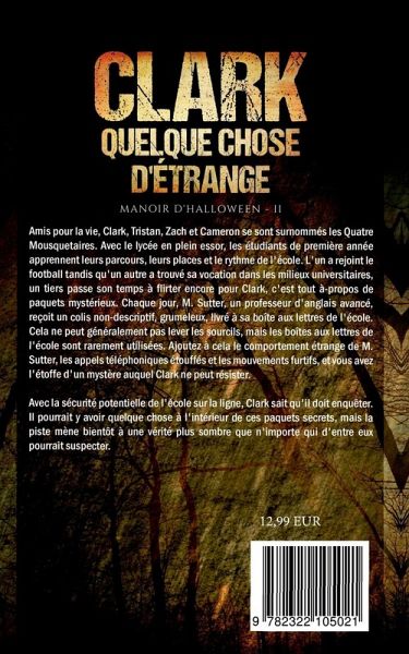 Amis pour la vie, Clark, Tristan, Zach et Cameron se sont surnommés les Quatre Mousquetaires. Avec le lycée en plein essor, les étudiants de première année apprennent leurs parcours, leurs places et le rythme de l'école. L'un a rejoint le football tandis qu'un autre a trouvé sa vocation dans les milieux universitaires, un tiers passe son temps à flirter encore pour Clark, c'est tout à-propos de paquets mystérieux. Chaque jour, M. Sutter, un professeur d'anglais avancé, reçoit un colis non-descriptif, grumeleux, livré à sa boîte aux lettres de l'école. Cela ne peut généralement pas lever les sourcils, mais les boîtes aux lettres de l'école sont rarement utilisées. Ajoutez à cela le comportement étrange de M. Sutter, les appels téléphoniques étouffés et les mouvements furtifs, et vous avez l'étoffe d'un mystère auquel Clark ne peut résister.Avec la sécurité potentielle de l'école sur la ligne, Clark sait qu'il doit enquêter. Il pourrait y avoir quelque chose à l'intérieur de ces paquets secrets, mais la piste mène bientôt à une vérité plus sombre que n'importe qui d'entre eux pourrait suspecter.