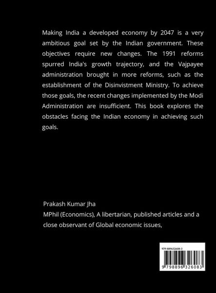 Making India a developed economy by 2047 is a very ambitious goal set by the Indian government. To meet those objectives new set of reforms are required. The 1991 reforms spurred India's growth trajectory and the Vajpayee administration brought more reforms such as establishment of Disinvestment Ministry. To achieve those goals, the recent implemented by the Modi administration are insufficient. This book explores the obstacles facing the Indian economy in achieving such goals.