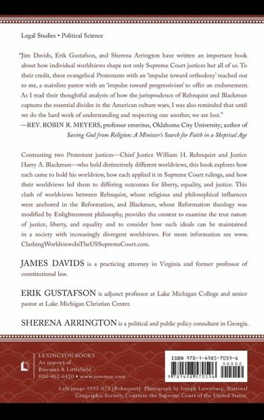 Contrasting two Protestant justices who hold distinctively different worldviews, Chief Justice William H. Rehnquist and Justice Harry A. Blackmun, this book explores how each came to hold his worldview, how each applied it in Supreme Court rulings, and how it led them to differing outcomes for liberty, equality, and justice. This clash of worldviews between Rehnquist, whose religious and philosophical influences were anchored in the Reformation, and Blackmun, whose Reformation theology was modified by Enlightenment philosophy, provide the context to examine the true nature of justice, liberty, and equality and to consider how such ideals can be maintained in a society with increasingly divergent worldviews.