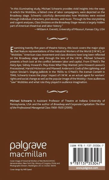 "In this illuminating study, Michael Schwartz provides vivid insights into the ways in which the Wobblies, a fabled crew of labor campaigners, were depicted on the Broadway stage. Schwartz colorfully demonstrates how Wobblies were evoked through individual characters, plot devices, and music. Through its fine storytelling and cogent analyses, Class Divisions on the Broadway Stage reveals a largely hidden part of American theatrical and labor history." - William A. Everett, University of Missouri, Kansas City, USA