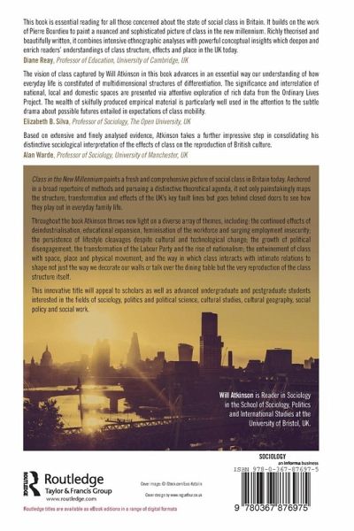 Class in the New Millennium paints a fresh and comprehensive picture of social class in Britain today. Anchored in a broad repertoire of methods and pursuing a distinctive theoretical agenda, it not only painstakingly maps the structure, transformation and effects of the UK's key fault lines but goes behind closed doors to see how they play out in everyday family life. Throughout the book Atkinson throws new light on a diverse array of themes, including: the continued effects of deindustrialisation, educational expansion, feminisation of the workforce and surging employment insecurity; the persistence of lifestyle cleavages despite cultural and technological change; the growth of political disengagement, the transformation of the Labour Party and the rise of nationalism; the entwinement of class with space, place and physical movement; and the way in which class interacts with intimate relations to shape not just the way we decorate our walls or talk over the dining table but the very reproduction of the class structure itself. This innovative title will appeal to scholars as well as advanced undergraduate and postgraduate students interested in the fields of sociology, politics and political science, cultural studies, cultural geography, social policy and social work.