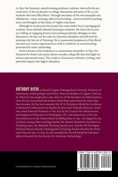 In Class Not Dismissed, award-winning professor Anthony Aveni tells the personal story of his six decades in college classrooms and some of the 10,000 students who have filled them. Through anecdotes of his own triumphs and tribulations-some amusing, others heartrending-Aveni reveals his teaching story and thoughts on the future of higher education. Although in recent years the lecture has come under fire as a pedagogical method, Aveni ardently defends lecturing to students. He shares his secrets on crafting an engaging lecture and creating productive dialogue in class discussions. He lays out his rules on classroom discipline and tells how he promotes the lost art of listening. He is a passionate proponent of the liberal arts and core course requirements as well as a believer in sound teaching promoted by active scholarship. Aveni is known to his students as a consummate storyteller. In Class Not Dismissed he shares real stories about everyday college life that shed light on serious educational issues. The result is a humorous, reflective, inviting, and powerful inquiry into higher education that will be of interest to anyone invested in the current and future state of college and university education.