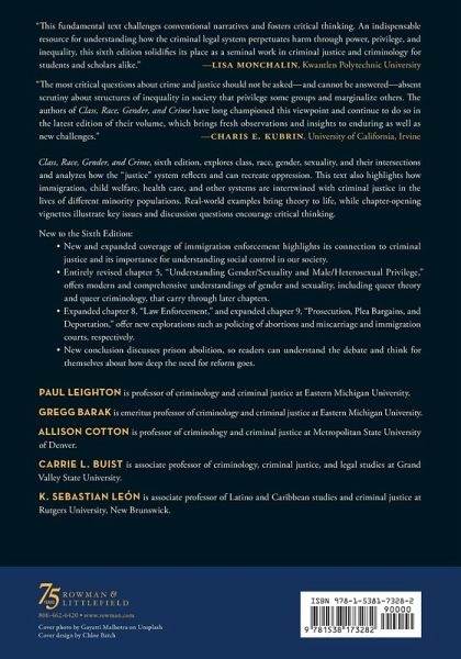 Introduction: Crime, Inequality, and Justice Part I: Crime Control and Criminology 1 The Crime Control Enterprise and Its Workers 2 Criminology and the Study of Class, Race, Gender, and Crime Part II: Inequality and Privilege 3 Understanding Class and Economic Privilege 4 Understanding Race and White Privilege 5 Understanding Gender and Male Privilege 6 Understanding Privilege and the Intersections of Class, Race, and Gender Part III: Law and Criminal Justice 7 Victimology and Patterns of Victimization 8 Lawmaking and the Administration of Criminal Law 9 Law Enforcement and Criminal Prosecution 10 Punishment, Sentencing, and Imprisonment Conclusion: Crime, Justice, and Policy