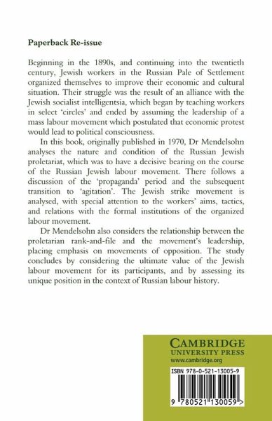 Beginning in the 1890s, and continuing into the twentieth century, Jewish workers in the Russian Pale of Settlement organised themselves to improve their economic and cultural situation. Their struggle was the result of an alliance with the Jewish socialist intelligentsia, which began by teaching workers in select 'circles' and ended by assuming the leadership of a mass labour movement. In this book, originally published in 1970, Dr Mendelsohn analyses the nature and condition of the Russian Jewish proletariat. There follows a discussion on the 'propaganda' period and the subsequent transition to 'agitation'. The Jewish strike movement is analysed, with special attention to the workers' aims, tactics and relations with the formal institutions of the organised labour movement. Dr Mendelson also considers the relationship between the proletarian rank-and-file and the movement's leadership, placing emphasis on movements of opposition. The study concludes by considering the ultimate value of the Jewish labour movement for its participants, and by assessing its unique position in the context of Russian labour history.
