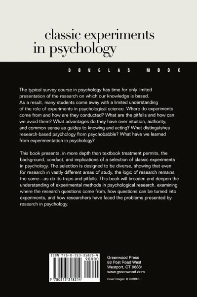The typical survey course in psychology has time for only limited presentation of the research on which our knowledge is based. As a result, many students come away with a limited understanding of the role of experiments in psychological science. Where do experiments come from and how are they conducted? What are the pitfalls and how can we avoid them? What advantages do they have over intuition, authority, and common sense as guides to knowing and acting? What distinguishes research-based psychology from psychobabble? What have we learned from experimentation in psychology? This book presents, in more depth than textbook treatment permits, the background, conduct, and implications of a selection of classic experiments in psychology. The selection is designed to be diverse, showing that even for research in vastly different areas of study, the logic of research remains the same-as do its traps and pitfalls. This book will broaden and deepen the understanding of experimental methods in psychological research, examining where the research questions come from, how questions can be turned into experiments, and how researchers have faced the problems presented by research in psychology.