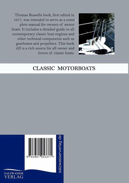 Thomas Russells book, first edited in 1917, was intended to serve as a complete manual for owners of motor boats. It includes a detailed guide to all contemporary classic boat engines and other technical components such as gearboxes and propellers. This book still is a rich source for all owners and lovers of classic boats.