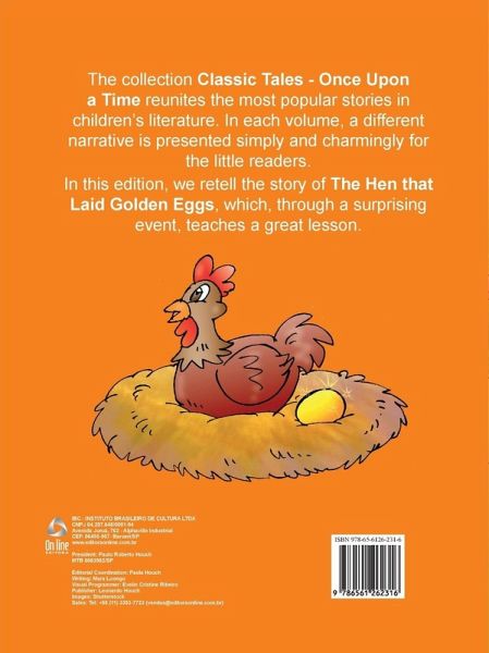 The collection Classic Tales - Once Upon a Time reunites the most popular stories in children's literature. In each volume, a different narrative is presented simply and charmingly for the little readers. In this edition, we retell the story of The Hen that Laid Golden Eggs, which, through a surprising event, teaches a great lesson.