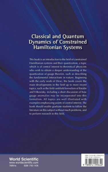 This book is an introduction to the field of constrained Hamiltonian systems and their quantization, a topic which is of central interest to theoretical physicists who wish to obtain a deeper understanding of the quantization of gauge theories, such as describing the fundamental interactions in nature. Beginning with the early work of Dirac, the book covers the main developments in the field up to more recent topics, such as the fieldantifield formalism of Batalin and Vilkovisky, including a short discussion of how gauge anomalies may be incorporated into this formalism. The book is comprehensive and well-illustrated with examples, enables graduate students to follow the literature on this subject without much problems, and to perform research in this field.