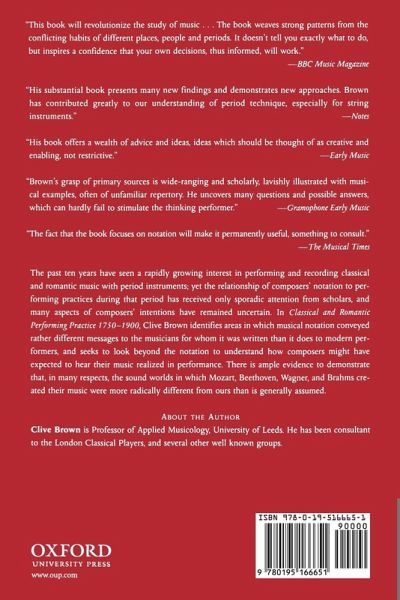 The past ten years have seen a rapidly growing interest in performing and recording Classical and Romantic music with period instruments; yet the relationship of composers' notation to performing practices during that period has received only sporadic attention from scholars, and many aspects of composers' intentions have remained uncertain. Brown here identifies areas in which musical notation conveyed rather different messages to the musicians for whom it was written than it does to modern performers, and seeks to look beyond the notation to understand how composers might have expected to hear their music realized in performance. There is ample evidence to demonstrate that, in many respects, the sound worlds in which Mozart, Beethoven, Wagner, and Brahms created their music were more radically different from ours than is generally assumed.
