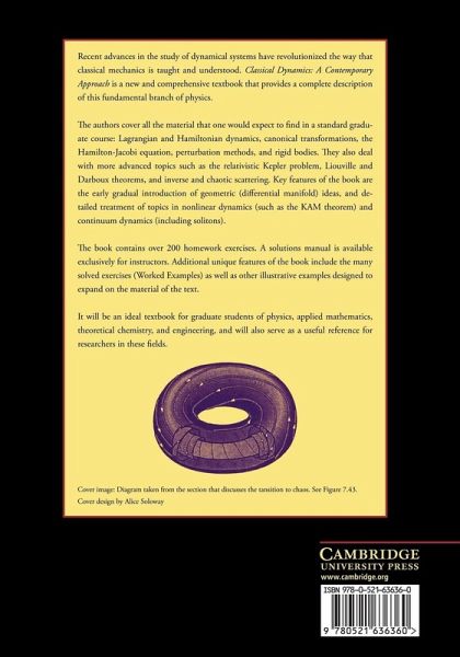 With many worked examples and over 200 homework exercises, this comprehensive textbook, first published in 1998, covers all the standard material in a graduate course on classical dynamics, plus advanced topics such as the relativistic Kepler problem, Liouville and Darboux theorems, and inverse and chaotic scattering. A solutions manual is available exclusively for instructors.
