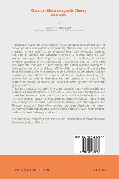 From the reviews of the second edition: "Electromagnetic theory is a core subject for students of physics and is often taught at various levels ... . Vanderlinde's book is aimed in between - for the advanced undergraduate or beginning graduate course ... . provides appendixes to cover the tensor framework and special functions that are needed. ... A large number of worked examples provides students with a toehold in dealing with problems. This book would serve as a solid addition to the physics collection of an undergraduate or graduate library. Summing Up: Highly recommended." (J. McCleary, CHOICE, Vol. 43 (1), September, 2005) "This textbook is written for senior-level college/university students of physics and electrical engineering. It is based on the author's classroom lecture notes. ... The developments in the text are supported by a collection of very well-drawn figures. Most chapters include some worked-out examples to illustrate new concepts ... ." (Philip Huddleston, Mathematical Reviews, Issue 2008 k)