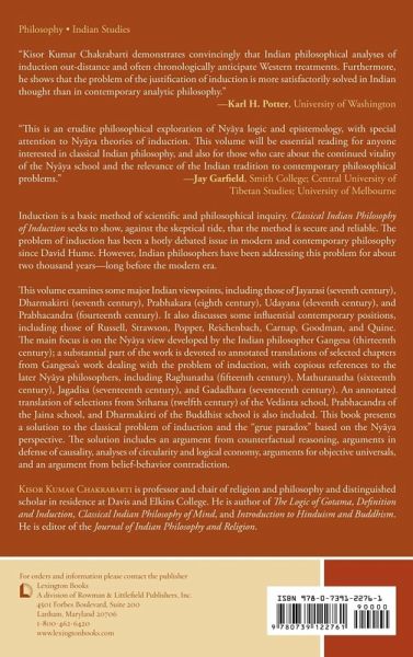 Chapter 1 Preface Chapter 2 Acknowledgements and Abbreviations Chapter 3 1. The Problem of Induction: East and West Chapter 4 2. The Later Nyaya Solution Chapter 5 3. The Method of Generalization (Vyaptigrahopayah) Chapter 6 4. Counterfactual Reasoning (Tarkah) Chapter 7 5. Universal Based Extraordinary Perception (Samanyalaksanapratyaksa) Chapter 8 6. Earlier Views of Adjuncts (Upadhivadah) Chapter 9 7. The Accepted View of Adjuncts (Upadhivadasiddhantah Chapter 10 8. Classification of Adjuncts (Upadhivibhagah) Chapter 11 9. Sriharsa's Khandanakhandakhndyam on Pervasion Chapter 12 10. Selected Passages from Prabhacandra'sPrameyakamalamartanda on Critique of Pervasion and Inference Chapter 13 11. Selections from Dharmakirti's Nyayabindu on Non-Perception as a Probans Chapter 14 Selected Bibliography