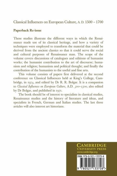 The papers illustrate the different ways in which the Renaissance made use of its classical heritage.