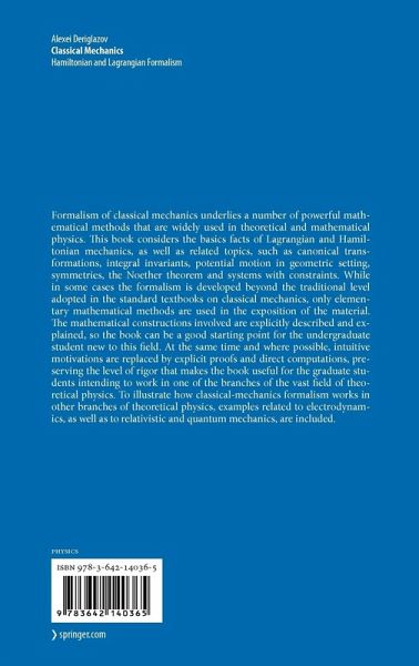 "The aim of the author of this interesting book is to present the main ideas of Hamiltonian mechanics and allied topics, by using just elementary mathematical methods. ... To illustrate how classical mechanics formalism works in other branches of theoretical physics, examples related to electrodynamics, as well as to relativistic and quantum mechanics, are included. This handbook is well addressed to undergraduate students in physics." (Franco Cardin, Zentralblatt MATH, Vol. 1206, 2011)
