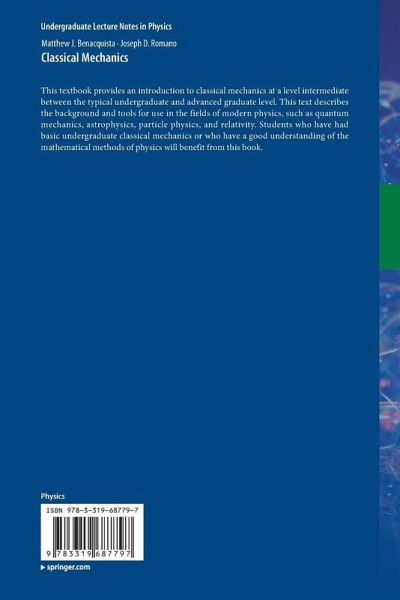 This textbook provides an introduction to classical mechanics at a level intermediate between the typical undergraduate and advanced graduate level. This text describes the background and tools for use in the fields of modern physics, such as quantum mechanics, astrophysics, particle physics, and relativity. Students who have had basic undergraduate classical mechanics or who have a good understanding of the mathematical methods of physics will benefit from this book.