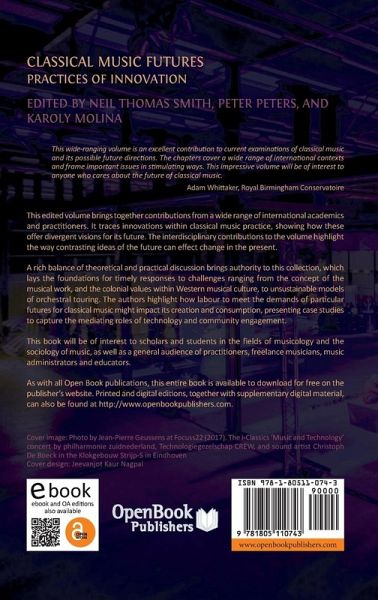 This volume brings together contributions from a wide range of international academics and practitioners. It traces innovations within classical music practice, showing how these offer divergent visions for its future. The interdisciplinary contributions to the volume highlight the way contrasting ideas of the future can effect change in the present. A rich balance of theoretical and practical discussion brings authority to this collection, which lays the foundations for timely responses to challenges ranging from the concept of the musical work, and the colonial values within Western musical culture, to unsustainable models of orchestral touring. The authors highlight how labour to meet the demands of particular futures for classical music might impact its creation and consumption, presenting case studies to capture the mediating roles of technology and community engagement. This book will be of interest to scholars and students in the fields of musicology and the sociology of music, as well as a general audience of practitioners, freelance musicians, music administrators and educators.