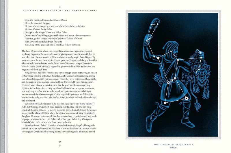 A retelling of the classic myths and timeless tales by bestselling author Annette Giesecke that underlie the 88 named constellations in the night sky--from Andromeda to Orion to Ursa Major. Classical Mythology of the Constellations is a stargazer's guide to the wondrous stories of the gods, heroes, and monsters that populate the night sky. As long as humans have lived on Earth, they have gazed up at the starry sky with fascination and longing. For the ancient Greeks and Romans, the Sun, Moon, and Earth were gods. The stars beyond our Solar System, however, represented heroes, animals, and monsters that the gods placed in the sky after their death. These include the great hunter Orion and the scorpion who killed him with its sting, the beautiful maiden Callisto who was turned into a bear (Ursa Major) by the goddess Hera, Perseus, the slayer of Medusa, and many more. In this beautifully designed work, stunningly illustrated by Jim Tierney, Giesecke tells the origin stories of the 48 constellations, first catalogued by the astronomer Ptolemy in the second century CE. A final section covers the names, locations, and brief descriptions of the remaining 40 constellations catalogued by astronomers in the sixteenth, seventeenth, and eighteenth centuries, which are not named for Classical figures. Organized by hemisphere and celestial quadrant, the book also includes two illustrated star maps to help guide the reader to the location of each constellation, as well as 48 color plates throughout.