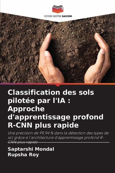 Ce livre présente une solution avancée d'apprentissage profond pour la classification des sols à l'aide de Faster R-CNN, atteignant une précision de 99,94 %. Il s'appuie sur l'analyse d'images pour classer avec précision plusieurs types de sols, notamment les sols noirs, les sols alluviaux, les sols limoneux et les sols rouges. L'approche intègre le prétraitement des images, les réseaux de proposition de régions et l'extraction de caractéristiques neuronales robustes afin de garantir des performances élevées en matière de détection et de classification. Les résultats visuels, notamment les diagrammes à barres, les diagrammes de dispersion et les graphiques linéaires, illustrent la précision prédictive et les indices de confiance, ce qui permet de mieux comprendre les performances du modèle. Conçu pour des applications dans les domaines de l'agriculture de précision et des sciences de l'environnement, ce travail réduit la dépendance à l'égard de l'analyse traditionnelle des sols en laboratoire et accélère la prise de décision en matière de gestion des sols. En fusionnant les techniques basées sur l'IA avec les besoins pratiques de l'agriculture, cette recherche établit une référence pour l'analyse des sols et souligne comment l'apprentissage profond peut transformer l'agriculture durable et l'optimisation des ressources.