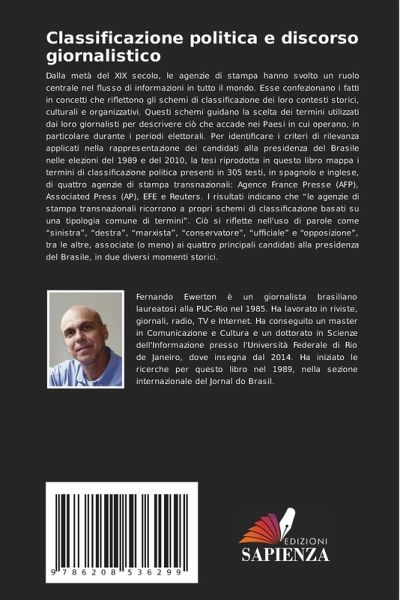 Dalla metà del XIX secolo, le agenzie di stampa hanno svolto un ruolo centrale nel flusso di informazioni in tutto il mondo. Esse confezionano i fatti in concetti che riflettono gli schemi di classificazione dei loro contesti storici, culturali e organizzativi. Questi schemi guidano la scelta dei termini utilizzati dai loro giornalisti per descrivere ciò che accade nei Paesi in cui operano, in particolare durante i periodi elettorali. Per identificare i criteri di rilevanza applicati nella rappresentazione dei candidati alla presidenza del Brasile nelle elezioni del 1989 e del 2010, la tesi riprodotta in questo libro mappa i termini di classificazione politica presenti in 305 testi, in spagnolo e inglese, di quattro agenzie di stampa transnazionali: Agence France Presse (AFP), Associated Press (AP), EFE e Reuters. I risultati indicano che "le agenzie di stampa transnazionali ricorrono a propri schemi di classificazione basati su una tipologia comune di termini". Ciò si riflette nell'uso di parole come "sinistra", "destra", "marxista", "conservatore", "ufficiale" e "opposizione", tra le altre, associate (o meno) ai quattro principali candidati alla presidenza del Brasile, in due diversi momenti storici.