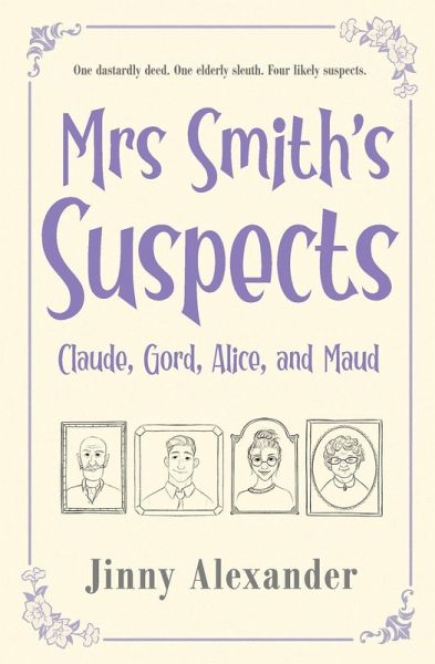 A corpse in a cupboard. Four likely suspects. One visually-impaired seventy-something sleuth. Introducing the new cozy mystery series: Mrs Smith's Suspects It's nearly Christmas in this small English town, and retired teacher Sally Smith is enjoying an afternoon in the hair salon. Until she sniffs out a corpse. With a body in the broom cupboard and a police-imposed lock-in until the culprit is caught, it doesn't take long to deduce someone in the salon is a cold-blooded killer. Sally's most challenging former pupil may have scraped through Police College but he's as incompetent as ever, so when the cops think they've collared the criminal, Sally's not sure they've made the right cut. Can a blind woman identify the true culprit or will Sally's sleuthing make her the chief suspect - or the next victim? Claude, Gord, Alice, and Maud is the first of Jinny Alexander's British small-town cosy mystery series, in which septuagenarian Mrs Smith sniffs out both the corpse and the culprit, in this modern-day version of a Golden Age locked room mystery. Also available as a LARGE PRINT PAPERBACK, ebook, and audiobook.