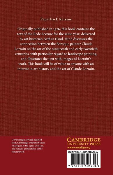 This book contains the Rede Lecture for the 1926, delivered by art historian Arthur Hind. Hind discusses the connection between the Baroque painter Claude Lorrain and the art of the nineteenth and early twentieth centuries, with particular regard to landscape painting, and illustrates the text with images of Lorrain's work.
