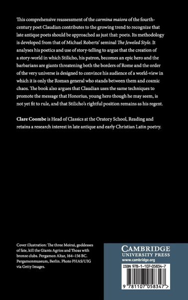 This comprehensive reassessment of the carmina maiora of the fourth-century poet Claudian contributes to the growing trend to recognize that Late Antique poets should be approached as just that: poets. Its methodology is developed from that of Michael Roberts' seminal The Jeweled Style. It analyzes Claudian's poetics and use of story telling to argue that the creation of a story world in which Stilicho, his patron, becomes an epic hero, and the barbarians are giants threatening both the borders of Rome and the order of the very universe is designed to convince his audience of a world-view in which it is only the Roman general who stands between them and cosmic chaos. The book also argues that Claudian uses the same techniques to promote the message that Honorius, young hero though he may seem, is not yet fit to rule, and that Stilicho's rightful position remains as his regent.