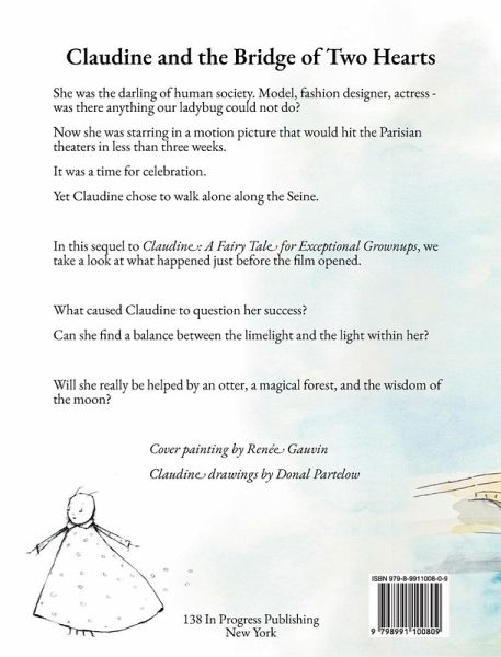 She was the darling of human society. Model, fashion designer, actress - was there anything our ladybug could not do? Now she was starring in a motion picture that would hit the Parisian theaters in less than three weeks. It was a time for celebration. Yet Claudine chose to walk alone along the Seine. In this sequel to Claudine: A Fairy Tale for Exceptional Grownups, we take a look at what happened just before the film opened. What caused Claudine to question her success? Can she find a balance between the limelight and the light within her? Will she really be helped by an otter, a magical forest, and the wisdom of the moon? With Claudine drawings by Donal Partelow. Cover paintings of Paris by Renee Gauvin.