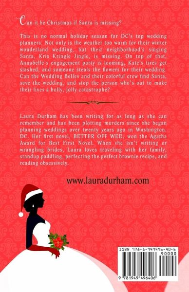 Wedding disasters are one thing. A missing Santa (who is presumed dead) is quite another. This is no normal holiday season for DC's top wedding planners. Not only is the weather too warm for their winter wonderland wedding, but their neighborhood's singing Santa, Kris Kringle Jingle, is missing. On top of that, Annabelle's engagement party is looming, and someone seems to be sabotaging their wedding plans. Can the Wedding Belles and their colorful crew find Santa, save the wedding, and stop the person who's trying to make their lives a holly, jolly catastrophe? Claus for Celebration, a novella, is the 15th standalone book in the hilarious Annabelle Archer Wedding Planner Mystery series. If you like larger-than-life characters, madcap capers, and an insider's look at glamorous society weddings, then you'll love Laura Durham's award-winning cozy mystery series. Cozy up to this a funny, festive holiday novella today!