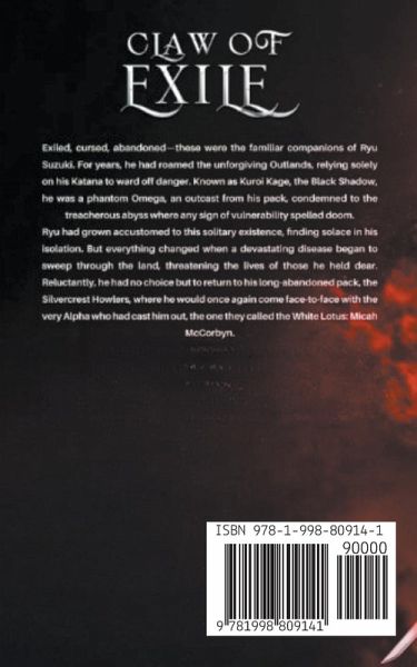 Exiled. Cursed. Abandoned. Ryu Suzuki, a fierce warrior known as Kuroi Kage, has been cursed to wander the treacherous Outlands alone with nothing but his katana. But when a deadly disease threatens to wipe out his pack, the Silvercrest Howlers, Ryu must confront his past and face his nemesis, Micah McCorbyn, the Alpha who banished him. As Ryu fights to save his pack from certain doom, tensions boil between him and Micah. Ryu's burning hatred for the Alpha threatens to derail their mission, but his love for the pack drives him forward. Every decision is a matter of life and death, and failure is not an option. With the clock ticking down to a final showdown between Ryu and Micah, the fate of the Silvercrest Howlers hangs in the balance. Can they put their bitter history aside and work together to overcome insurmountable odds? Or will their turbulent past and uncertain future tear them apart? Warning: this a dark MM romance, MM enemies-to-lovers romance that includes, rejected mate, violence, gore, MM werewolf shifter, mm paranormal romance, mm urban fantasy, mm possessive romance, mm second chance romance with an HFN ending.