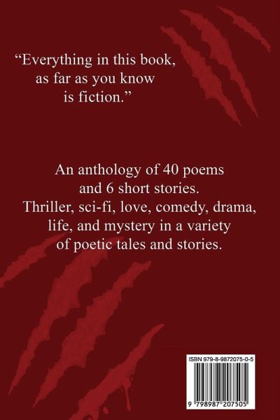 An anthology of 40 poems and 6 short stories. Thriller, sci-fi, love, comedy, drama, life, and mystery in a variety of poetic tales and stories. ¿
