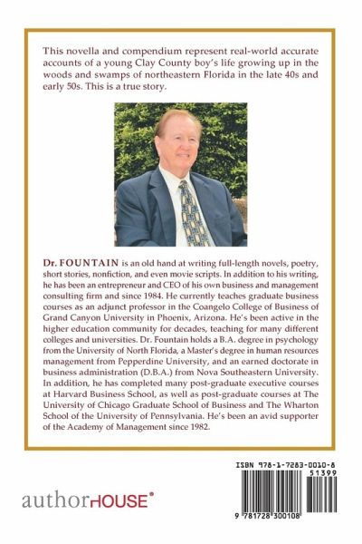 This novella and compendium represent real-world accurate accounts of a young Clay County boy's life growing up in the woods and swamps of northeastern Florida in the late 40s and early 50s. This is a true story.