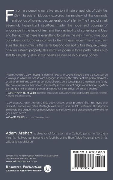 From a sweeping narrative arc to intimate snapshots of daily life, Clay Vessels ambitiously explores the mystery of the demands and bonds of love across generations of a family. The litany of small, seemingly insignificant sacrifices made; the hope and courage of endurance in the face of fear and the inevitability of suffering and loss; and the fact that there is everything to gain in the way in which we pour ourselves out for others comes to life in these pages. There is a treasure that lies within us that is far beyond our ability to safeguard, keep, or even esteem properly. This narrative poem in three parts helps us to feel this mystery alive in our hearts as well as in our very bones.