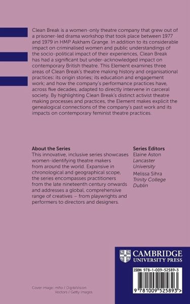 This Element examines three areas of Clean Break's theatre making history and organisational practices: its origin stories; its education and engagement work; and how the company's performance practices have adapted to directly intervene in carceral society.