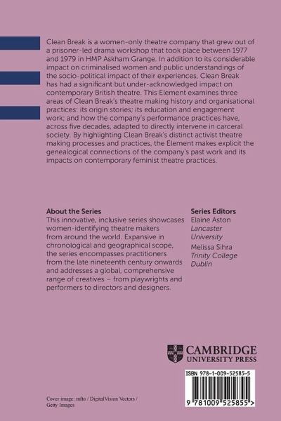 This Element examines three areas of Clean Break's theatre making history and organisational practices: its origin stories; its education and engagement work; and how the company's performance practices have adapted to directly intervene in carceral society.